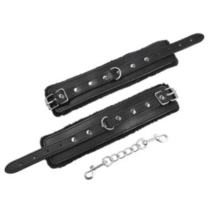 Este acessório sexy é feito de pele de alta qualidade na cor preta. A parte interior as algemas são forradas com um pelo também na cor preta, para garantires o conforto e a contenção segura do teu parceiro imobilizado.
